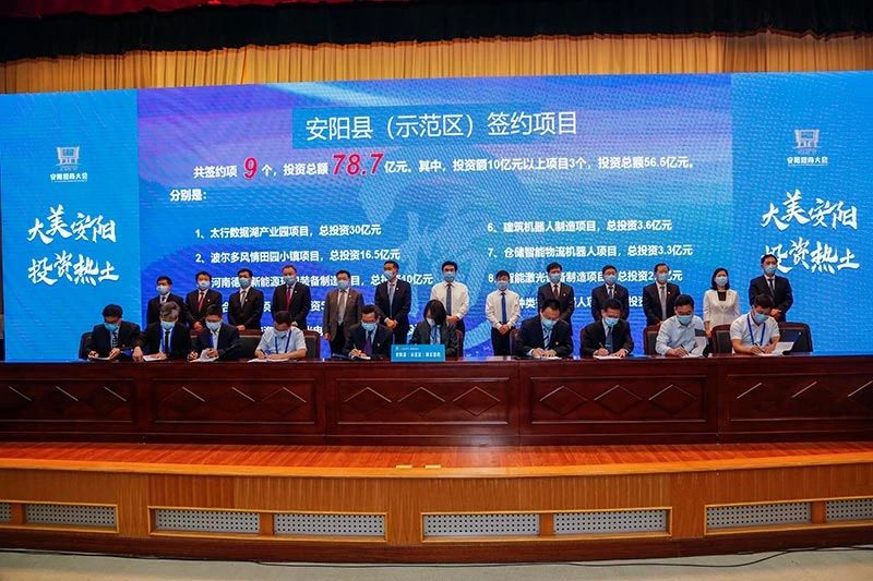 安陽(yáng)市委副書(shū)記、市長(zhǎng)袁家健向聘請(qǐng)的6名“安陽(yáng)市招商大使”頒發(fā)聘書(shū),他們分別是,中國(guó)電子材料行業(yè)協(xié)會(huì)副秘書(shū)長(zhǎng)、覆銅板材料行業(yè)協(xié)會(huì)秘書(shū)長(zhǎng)雷正明,中國(guó)建筑衛(wèi)生陶瓷協(xié)會(huì)秘書(shū)長(zhǎng)宮衛(wèi),東旭光電科技股份有限公司董事長(zhǎng)陳英,廈門(mén)象道物流有限公司董事長(zhǎng)溫兆仁,中國(guó)服裝協(xié)會(huì)童裝專(zhuān)業(yè)委員會(huì)副主任、叮當(dāng)貓國(guó)際控股集團(tuán)有限公司董事長(zhǎng)劉昭,浙江合眾新能源汽車(chē)有限公司董事長(zhǎng)方運(yùn)舟,通過(guò)招商大使的輻射帶動(dòng)作用,使更多高質(zhì)量項(xiàng)目和高端人才、優(yōu)勢(shì)資源匯聚安陽(yáng),推動(dòng)全市經(jīng)濟(jì)取得新發(fā)展;最后,分批次進(jìn)行項(xiàng)目簽約,現(xiàn)場(chǎng)簽約項(xiàng)目89個(gè),總投資額1220.7億元,涵蓋了新能源、智能制造、精品鋼及深加工、汽車(chē)零部件、電子信息、數(shù)字經(jīng)濟(jì)、食品醫(yī)藥、文化旅游等多個(gè)領(lǐng)域,有力促進(jìn)了我市經(jīng)濟(jì)高質(zhì)量發(fā)展,為我市建設(shè)新時(shí)代區(qū)域性中心強(qiáng)市提供了強(qiáng)大支撐。