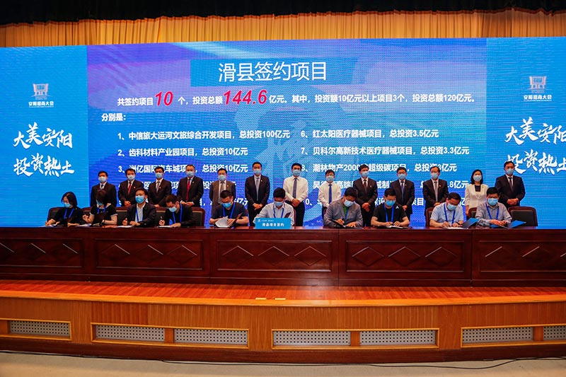 5月18日,安陽(yáng)市隆重舉辦了“大美安陽(yáng) 投資熱土”2020安陽(yáng)招商大會(huì),F(xiàn)場(chǎng)簽約項(xiàng)目89個(gè),總投資額1220.7億元。河南省商務(wù)廳副廳長(zhǎng)孫敬林,市領(lǐng)導(dǎo)李公樂(lè)、袁家健、陳志偉、董良鴻、李向前、程利軍、田海濤、祝振玲、李長(zhǎng)治、高勤科、侯合柱出席了活動(dòng)。各縣(市、區(qū))、市直有關(guān)單位負(fù)責(zé)同志參加了活動(dòng)。