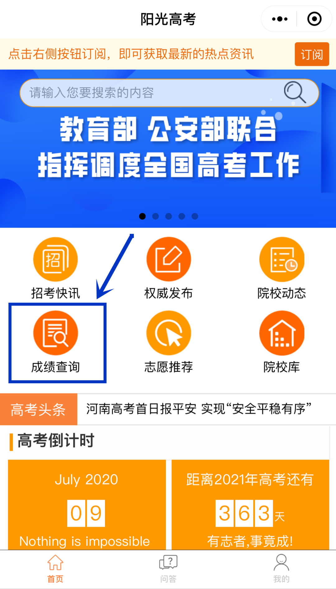登錄“豫事辦”查詢高考成績(jī)。