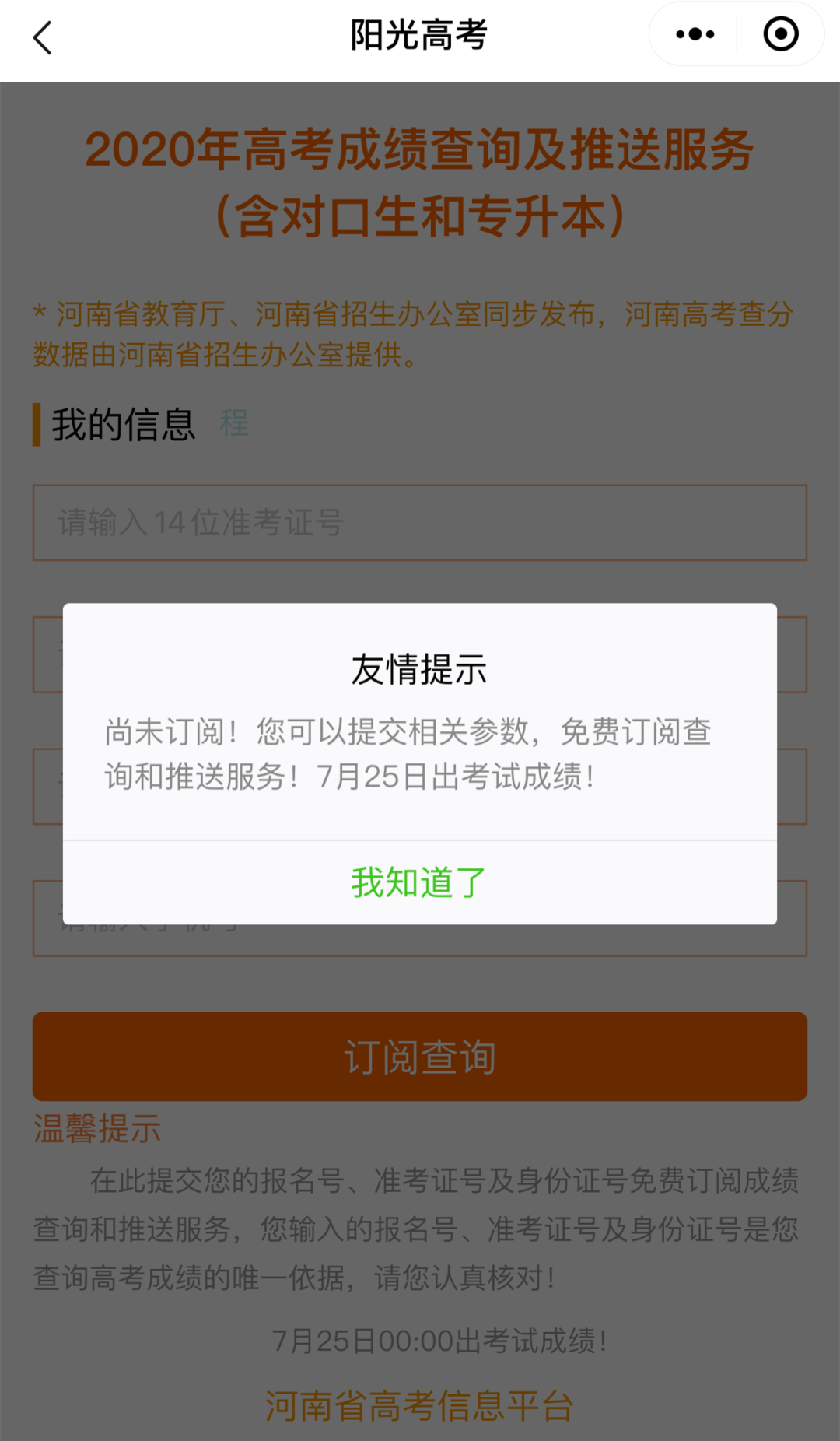 填寫(xiě)考生信息提交訂閱