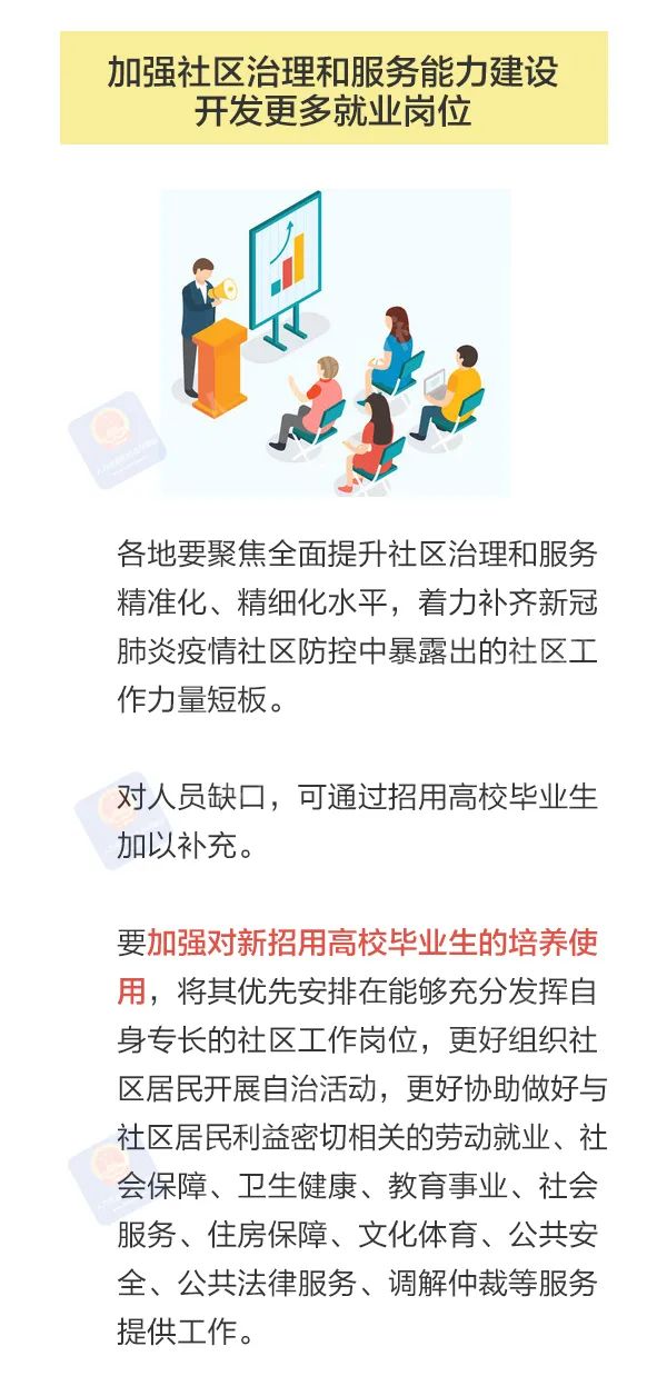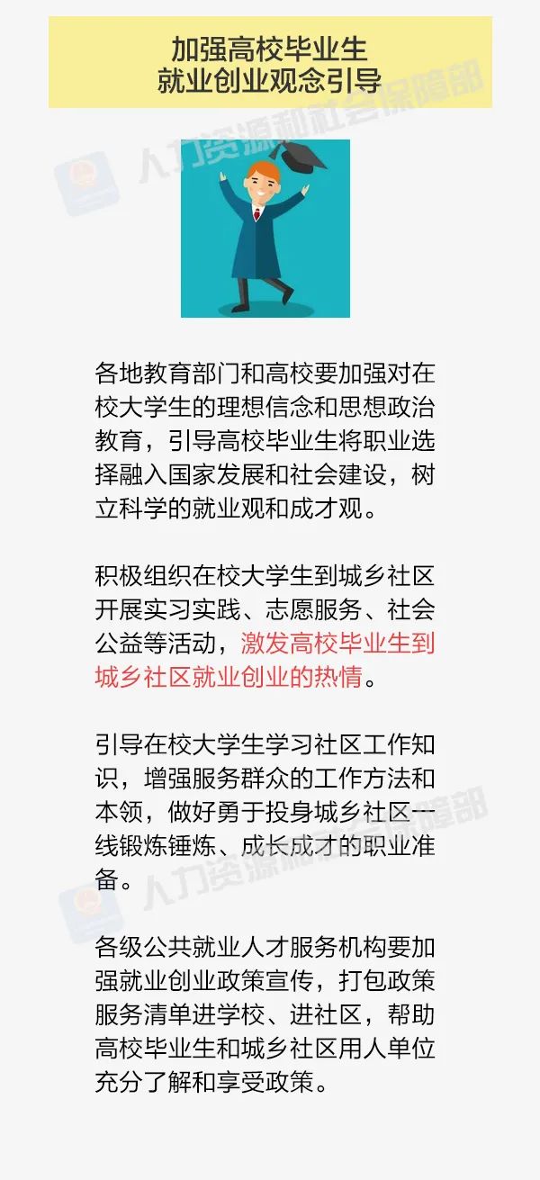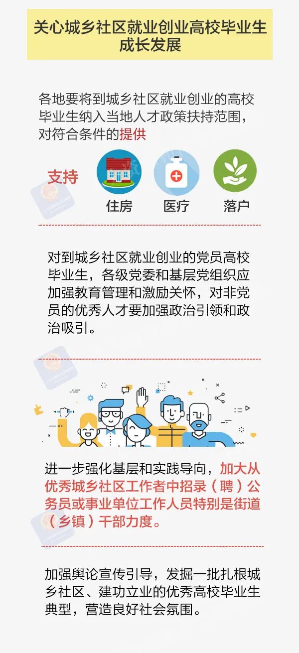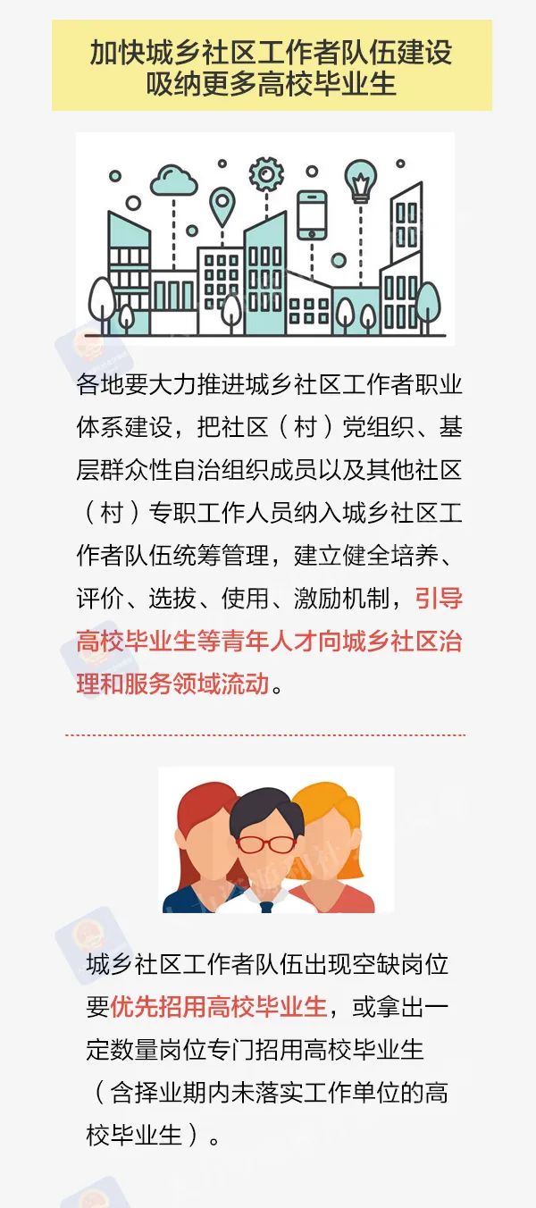 近日,中央組織部、人力資源社會(huì)保障部、民政部、中央文明辦、教育部、財(cái)政部、國家衛(wèi)生健康委等七部門印發(fā)《關(guān)于引導(dǎo)和鼓勵(lì)高校畢業(yè)生到城鄉(xiāng)社區(qū)就業(yè)創(chuàng)業(yè)的通知》,拓寬高校畢業(yè)生就業(yè)渠道,助推城鄉(xiāng)社區(qū)治理體系和治理能力建設(shè)。
