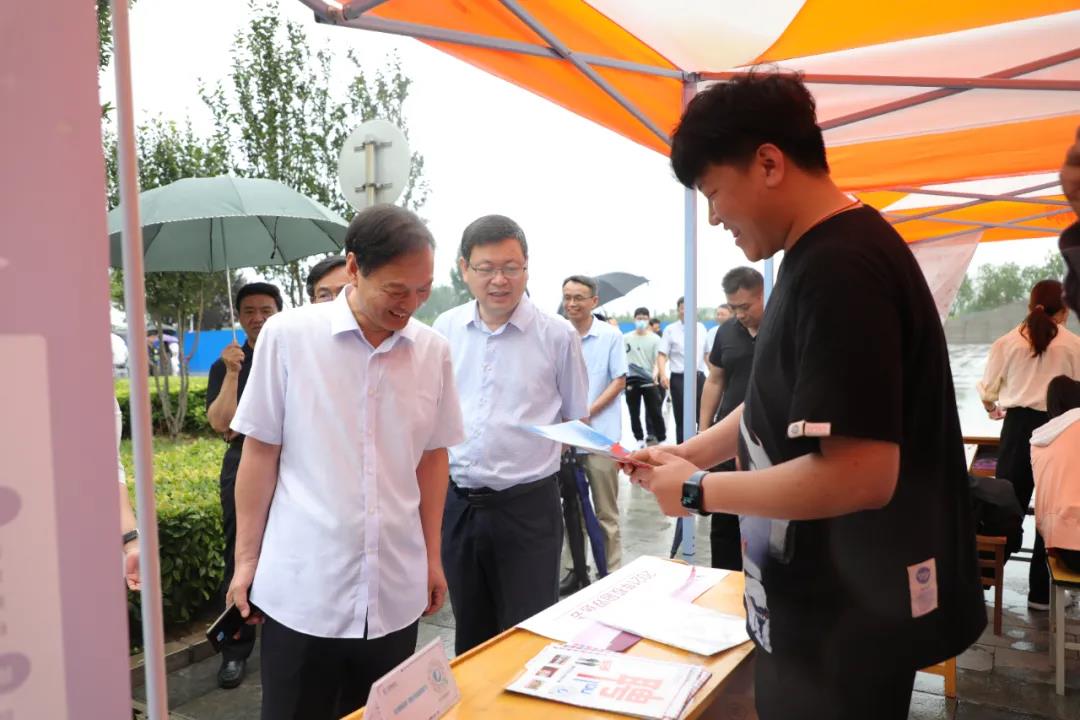 雙選會現(xiàn)場嚴(yán)格做好防疫防控,2021屆、2022屆畢業(yè)生分批次有序參會,人頭攢動、如火如荼。畢業(yè)生們認(rèn)真閱讀用人單位招聘簡章,就工作內(nèi)容、崗位職責(zé)、發(fā)展前景、薪資待遇等問題咨詢招聘單位。企業(yè)招聘專員認(rèn)真宣講推介,答疑解惑,與畢業(yè)生積極互動交流。王愛宏書記、王慶飛院長及市委組織部、安陽人社局、高新區(qū)管委會等相關(guān)人員一行人,來到雙選會現(xiàn)場實(shí)地察看,并作出指導(dǎo)。