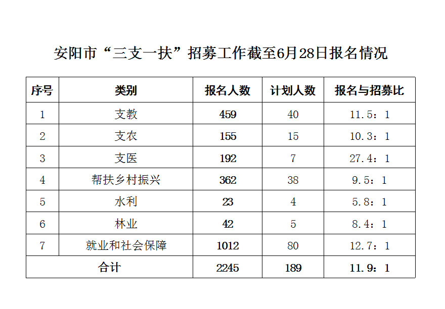 安陽市“三支一扶”招募工作截至6月28日報名情況