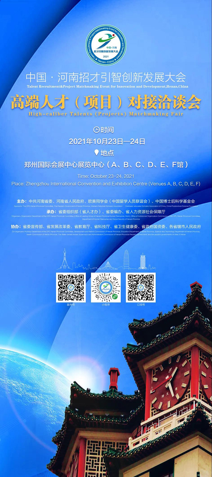 為進(jìn)一步貫徹學(xué)習(xí)習(xí)近平總書(shū)記給予河南“奮勇?tīng)?zhēng)先、更加出彩”的殷殷囑托,實(shí)現(xiàn)“兩個(gè)確!钡膴^斗目標(biāo),10月23日-24日,第四屆中國(guó)·河南招才引智創(chuàng)新發(fā)展大會(huì)將在鄭州國(guó)際會(huì)展中心舉辦。